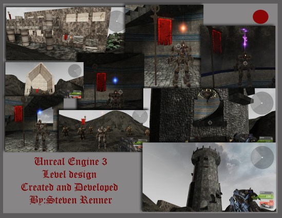 Unreal Engine 3 Level Design By Steven Renner “Flags ad NPC’s were Designed by Epic Games” Buildings Terain and objects in scene designed by me, the textures used in the Level were places by myself but pulled from the Unreal/ UDK Content Browser and are property or Unreal/Epic Games.